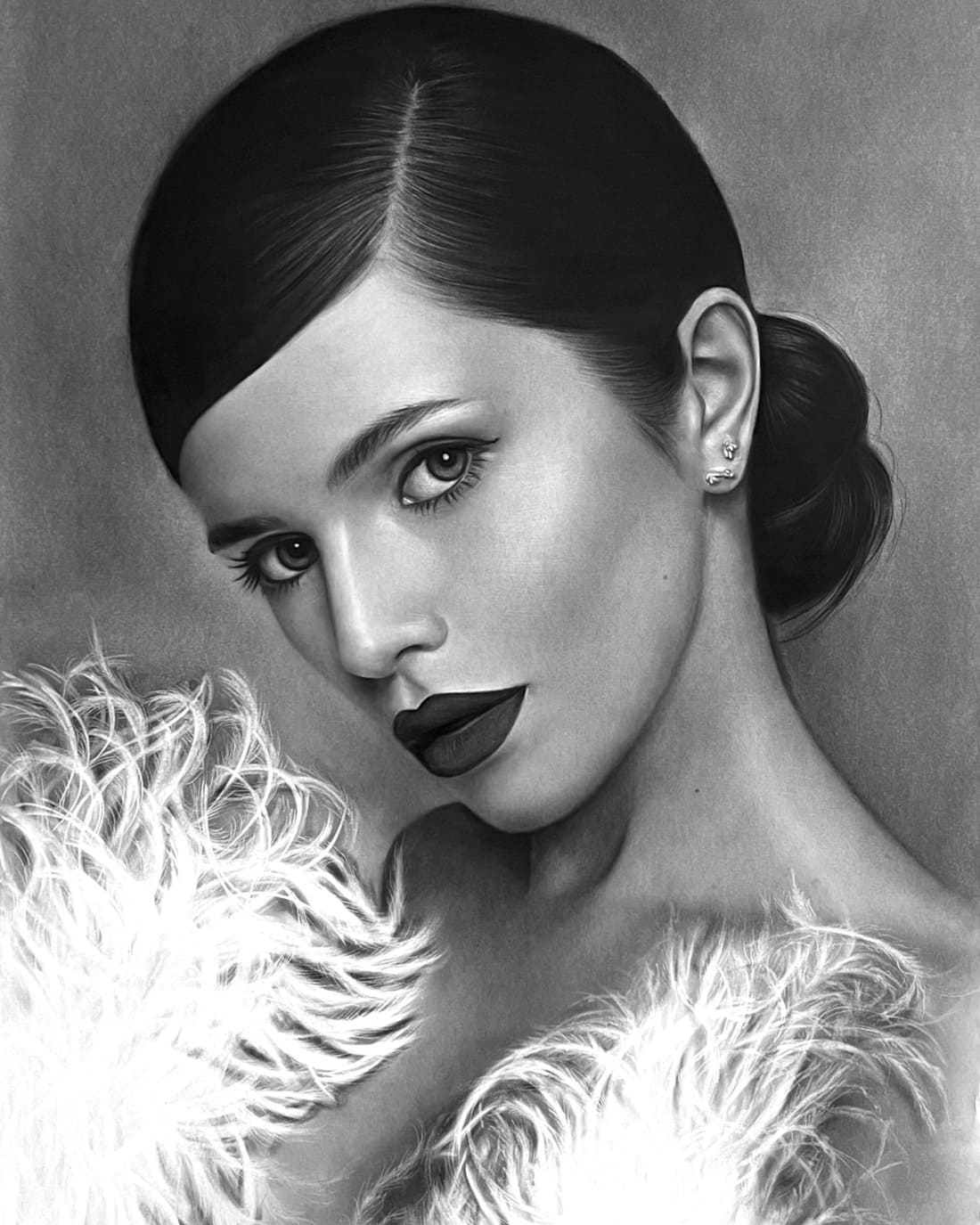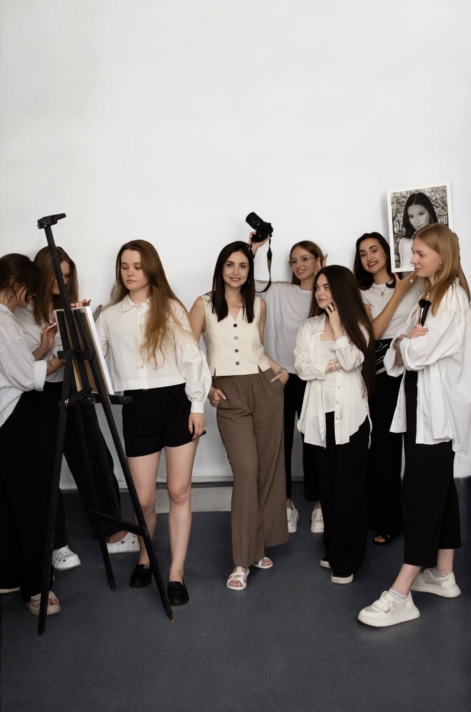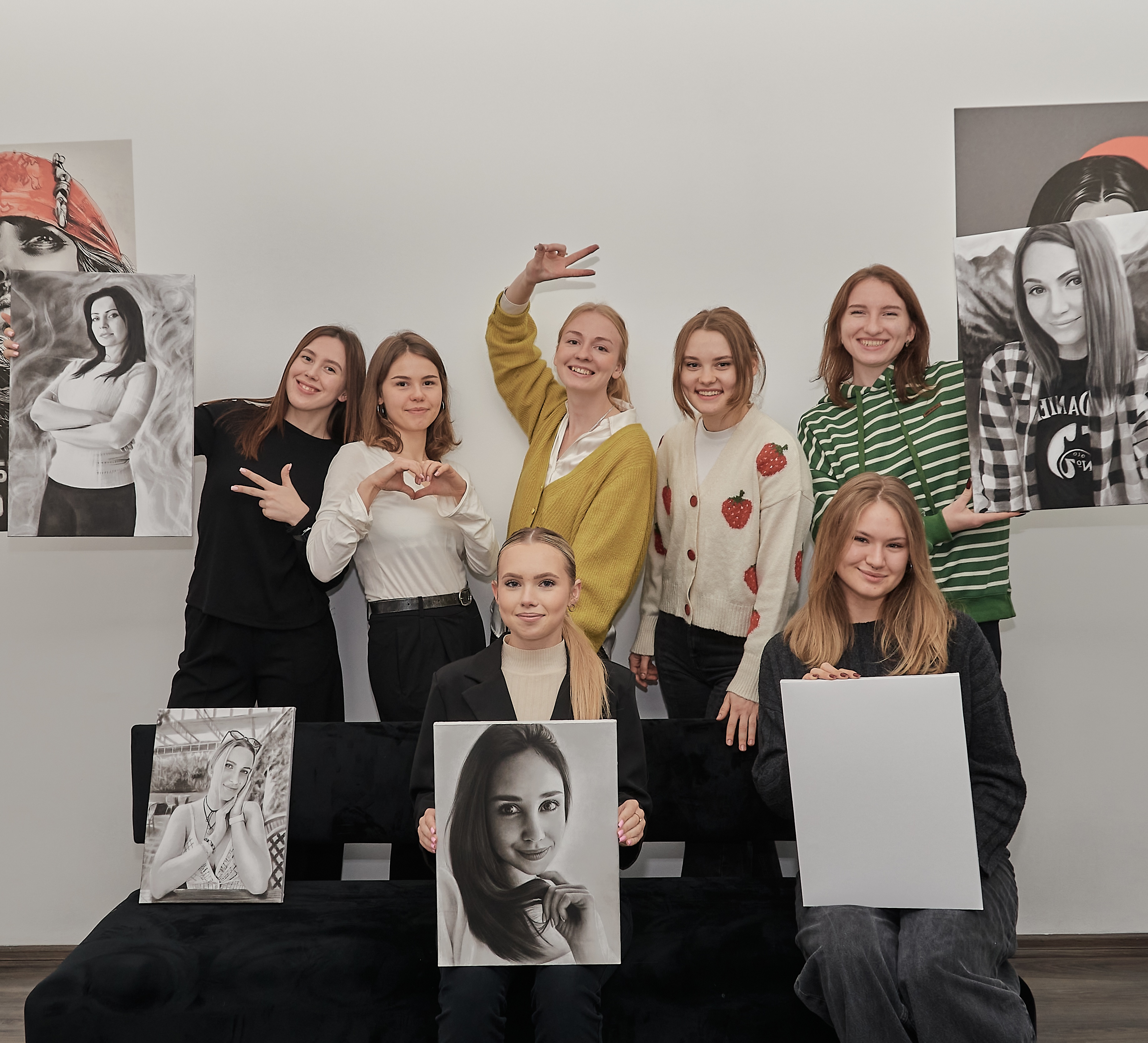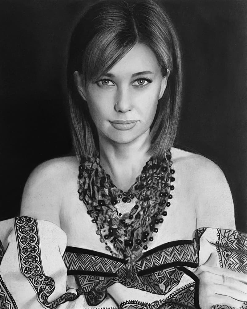 Портрети пишуться з використанням олівців, вугілля, вугільної пудри, спеціальної білої фарби та інших інструментів наших майстрів.